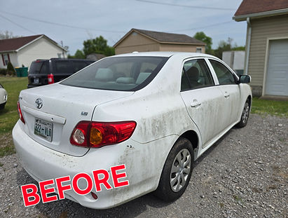 This customer had a 2009 Corolla that sat for over 8 years outside in the elements. It contained numerous hard mold spots on every surface of the exterior, and numerous hard crusty spots on the interior. Considering the circumstances - this vehicle came out very good!